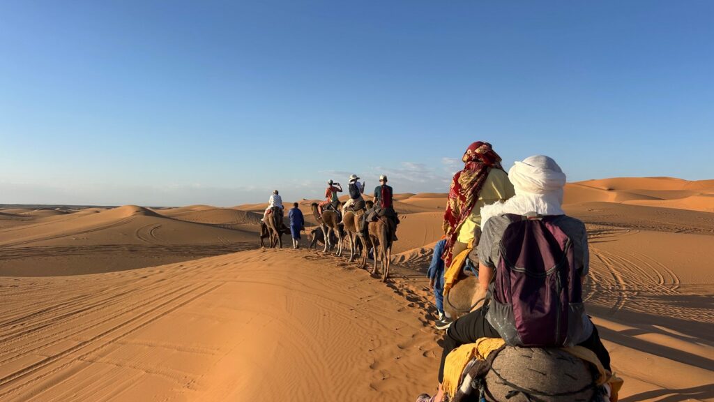 We had an amazing 14 day, 13 night trip through Morocco organized by Claire of Wild Sage (international active travel). 5 stars all the way. History, culture, geography, great food, beautiful small riads for lodging, interaction with residents, both natural and man-made beauty, all woven together in an excellent immersive experience. On this trip, we covered almost the entire country, so this style of travel might not be for everyone. There is a lot of car time (SUVs with wonderful local drivers, formerly nomads!); this is necessary if you want to see all of Morocco. The geography, culture, and weather change as you cross the terrain. The country is approximately the size of California. On this itinerary, you drive across the breadth and length of the country. During the 14 days, we usually stayed 2 nights in beautiful riads run by locals. Occasionally, we stayed one night. We had native drivers and guides to educate us throughout. The tour included the cities of Marrakech, Essaouira, Fes, Tangier, and Chefchaouen (the Blue City), plus the natural beauty of the Atlas Mountains, the Sahara desert (amazing camel ride!) and Dades Gorge. Our food was always good and of the region. Claire has immense knowledge of world history and culture. Thus, she provides amazing perspective. All the guides and drivers were flexible and did their best to accommodate the individual needs of each group member. The trip was superlative in every way. Take the camel ride; It’s magical!